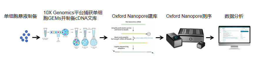 单细胞三代全长转录组测序技术基于10x Genomics单细胞捕获平台与Oxford Nanopore长读长测序技术构建,不仅可解析单个细胞的基因表达全景,还能精准捕获mRNA的完整结构信息。该技术通过整合单细胞技术与三代长读长测序的优势,将单细胞转录组分析从基因表达水平推进至转录本异构体层面。