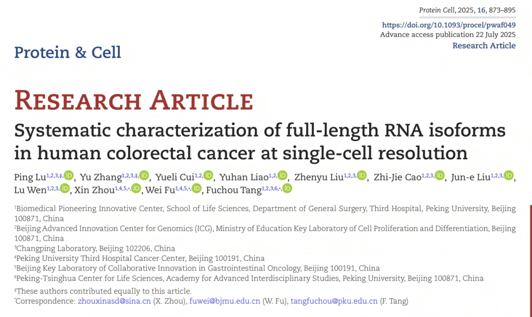 Lu, Ping et al. “Systematic characterization of full-length RNA isoforms in human colorectal cancer at single-cell resolution.” Protein & cell vol. 16,10 (2025): 873-895. doi:10.1093/procel/pwaf049