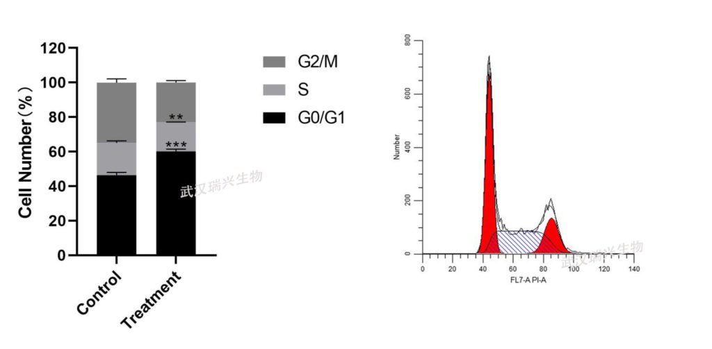· G2/M期:G2期是DNA复制结束和开始有丝分裂之间的间隙,当DNA复制成为4倍体时,细胞进入G2期。G2期细胞继续合成RNA及蛋白质,直到进入M期,从DNA含量上同样无法区分G2期和M期。
