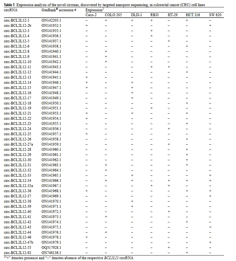 文献2: Discovery of circular transcripts of the human BCL2-like 12 (BCL2L12) apoptosis-related gene, using targeted nanopore sequencing, provides new insights into circular RNA biology