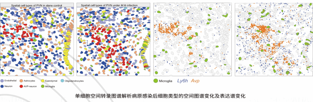 在同一张切片上,微生物和宿主基因的空间表达信息和相互作用关系