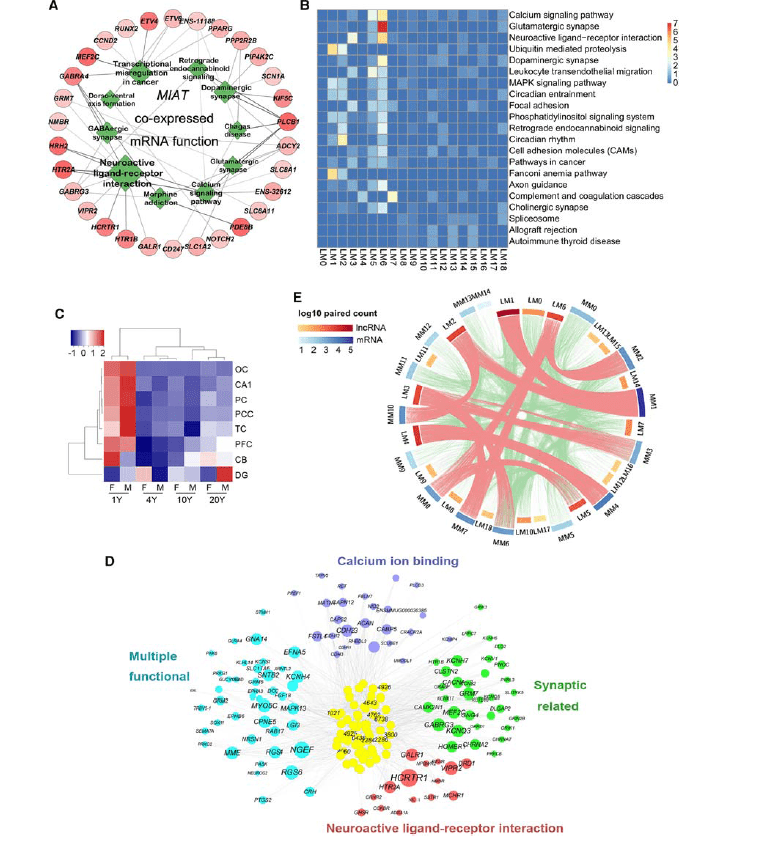 大脑特异性lncRNAs呈现出高度的区域、性别和年龄表达差异性。
