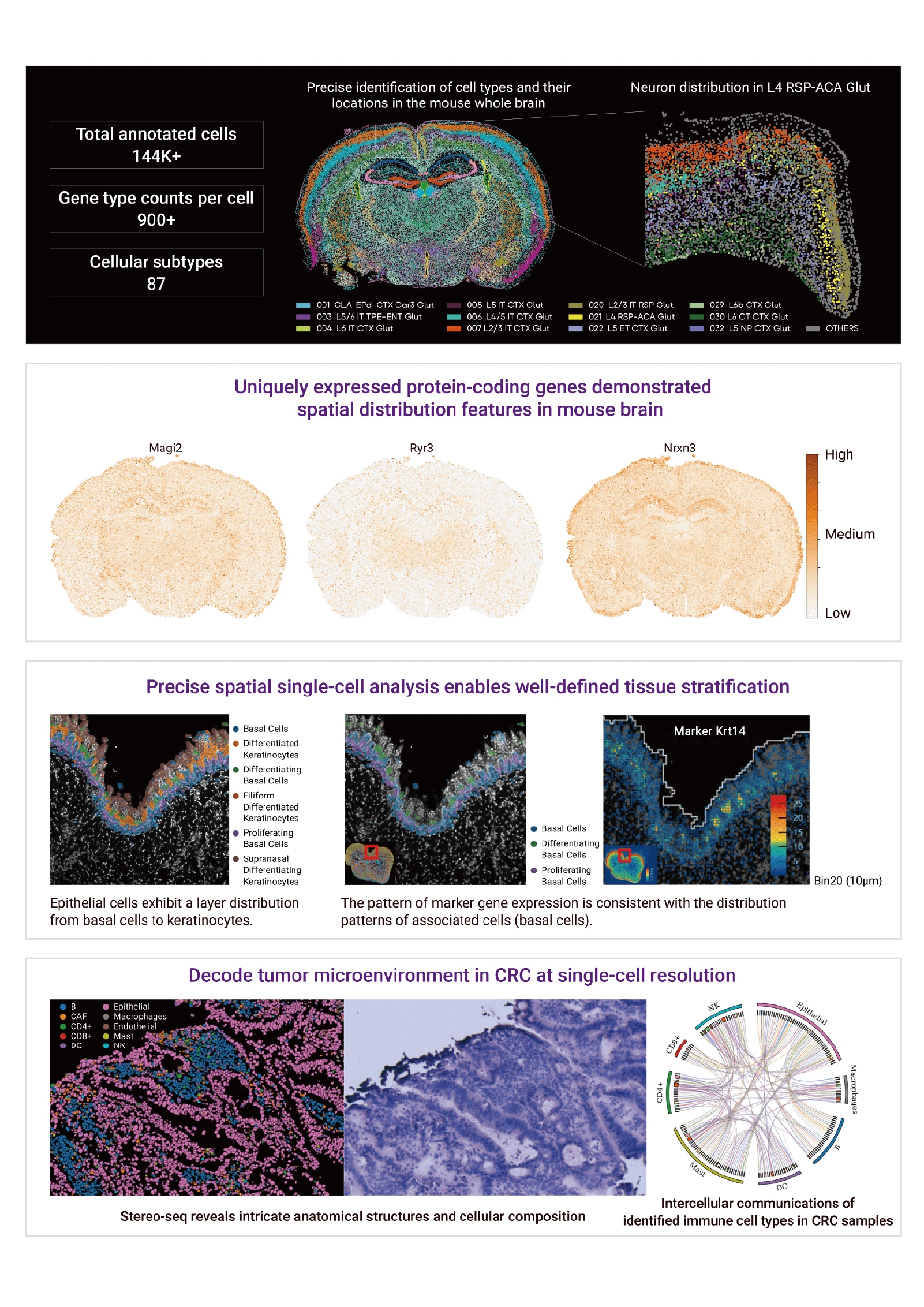 Through image recognition technology, the nuclei are identified and segmented to obtain Cellbin. Based on the additional spatial transcriptome information captured at the Cellbin level, the spatial characteristics of gene expression can be delicately explored with single-cell resolution.