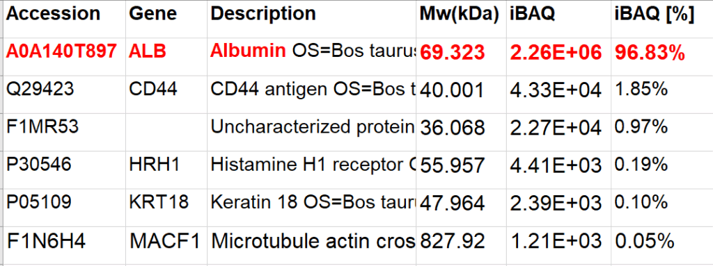 ✔ 蛋白鉴定列表按照蛋白丰度参考值排序,利于筛选