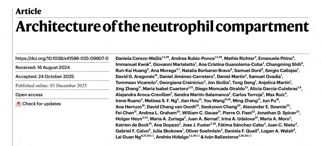 Cerezo-Wallis, Daniela, et al. “Architecture of the Neutrophil Compartment.” Nature, 3 Dec. 2025, pp. 1-66, https://doi.org/10.1038/s41586-025-09807-0.