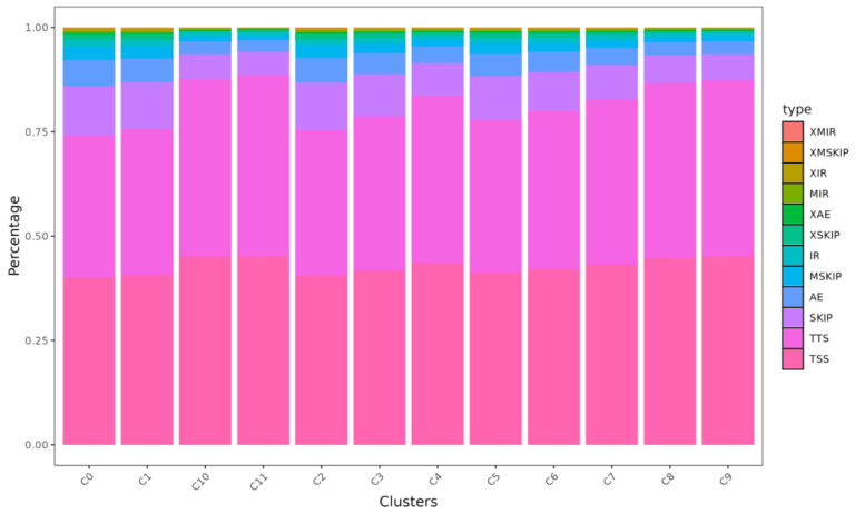• 脑区特异性:丘脑和小脑的星形胶质细胞表现出强烈的转录起始位点(TSS)、多聚腺苷酸化(poly (A))位点和外显子调控差异,提示剪接对脑区形态和功能的重要影响。