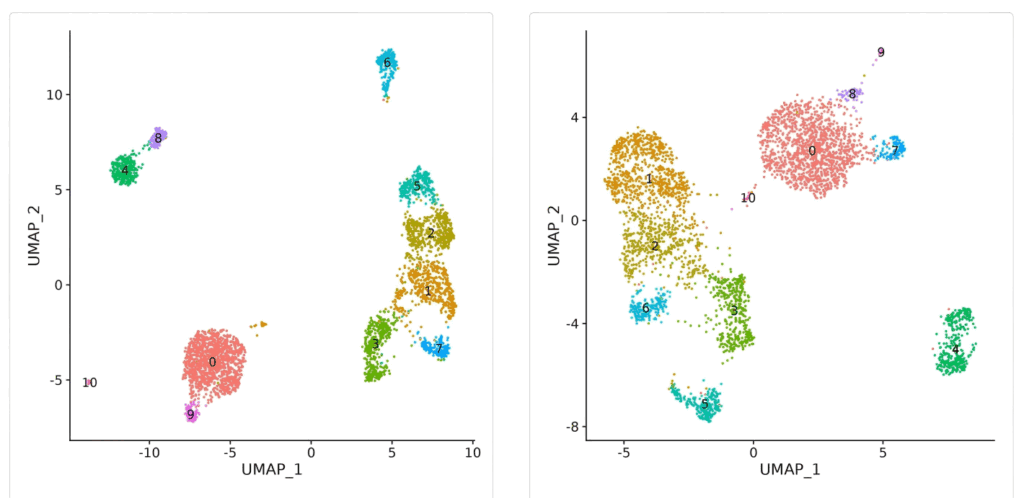 ✔ 数据质量高(核心优势):先对混合细胞核进行批量转座,后再进行单细胞分离与标记,避免了在液滴生成过程中因细胞核破损造成的分子交叉污染,显著降低了背景噪音,从而获得信噪比更优、数据质量更高的测序结果。