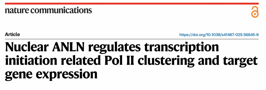 中文题目:细胞核ANLN蛋白调控转录起始相关的RNA聚合酶II聚集和靶基因表达