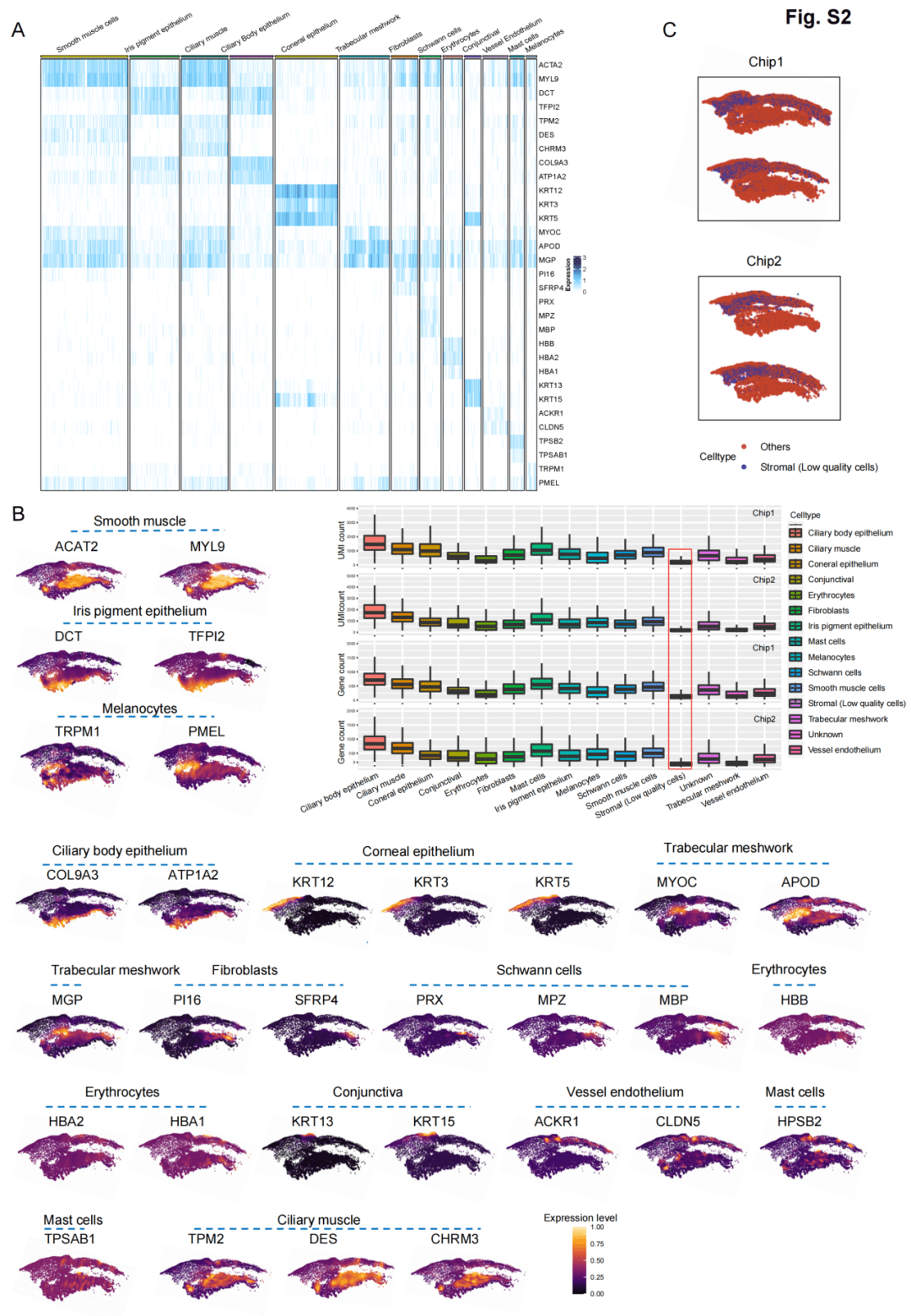 研究鉴定出15种细胞类型,包括平滑肌细胞、虹膜色素上皮、睫状肌、睫状体上皮、角膜上皮、小梁网(TM)细胞、成纤维细胞、雪旺细胞等。