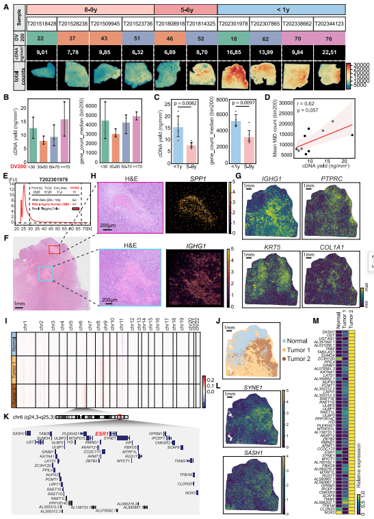 图1. Stereo-seq V2技术对不同保存年限的FFPE三阴性乳腺癌样本进行精准分析