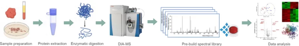 蛋白提取 → 蛋白酶解 → 质谱检测(DIA模式) → 数据库检索 → 数据分析