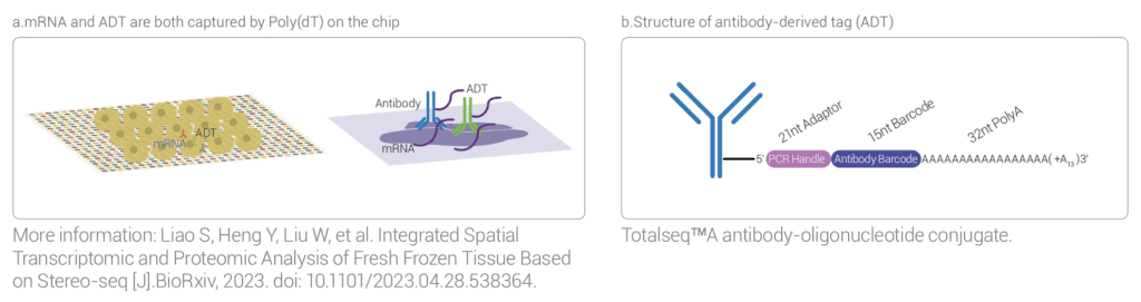 Utilizing the ultra-high resolution of Stereo-seq, Stereo-CITE combines Cellular Indexing of Transcriptomes and