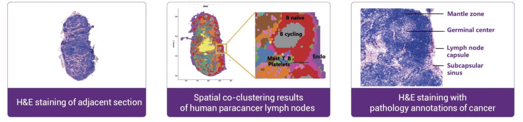 The figure below shows the comparison of the spatial co-clustering results with the H&E-stained image of adjacent