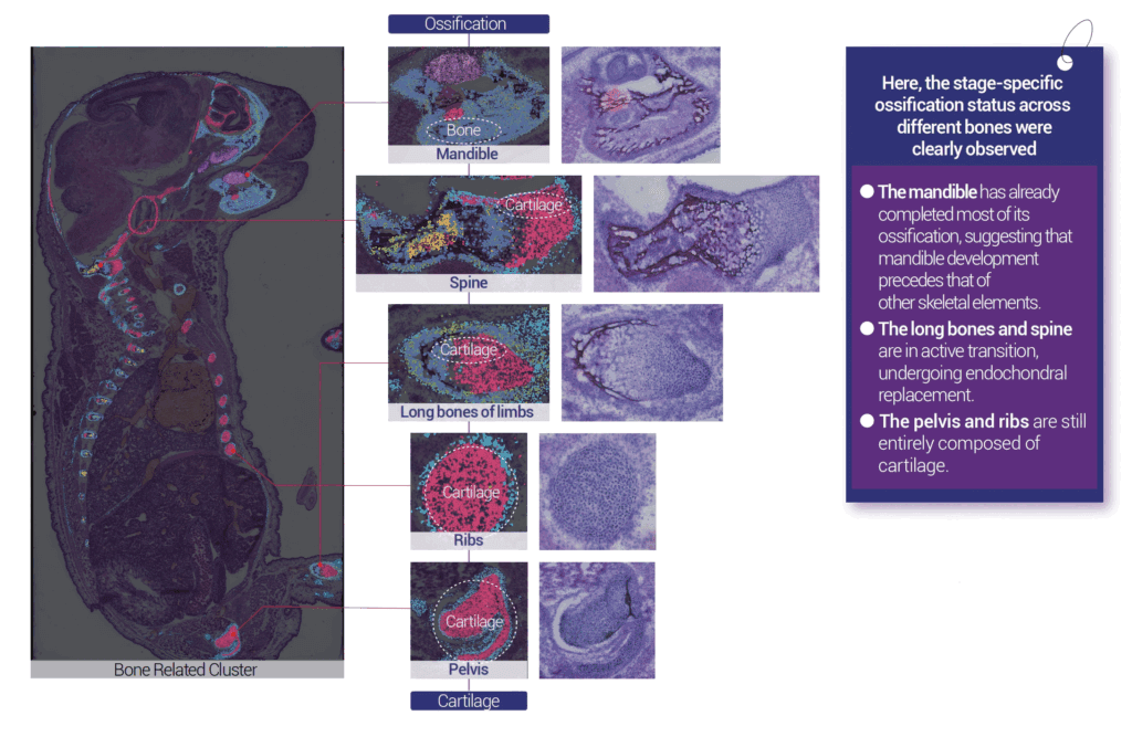 High fidelity spatial profiling of stage-specific ossification across skeletal structures