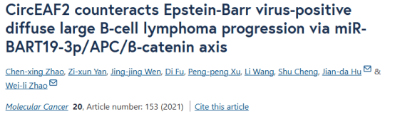 Title:CircEAF2 counteracts Epstein-Barr virus-positive diffuse large B-cell lymphoma progression via miR-BART19-3p/APC/β-catenin axis