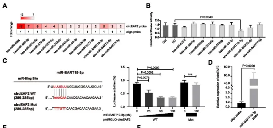 研究通过RNA pull down实验发现,circEAF2通过特异性靶向EBV编码的miR-BART19-3p,上调APC蛋白,抑制β-catenin的表达,从而导致Wnt信号通路失活,进而抑制EBV阳性DLBCL细胞的增殖。在EBV阳性B淋巴瘤小鼠模型中,circEAF2过表达的移植肿瘤显示出Ki-67阳性细胞减少、细胞凋亡增加以及肿瘤生长减缓。综上所述,本研究发现circEAF2通过miR-BART19-3p/APC/β-catenin轴抑制EBV阳性DLBCL的进展,因此,circEAF2被认为是潜在的预后生物标志物。针对EBV编码的miRNA的治疗策略,可能成为治疗EBV相关淋巴恶性肿瘤的一个有希望的方向。